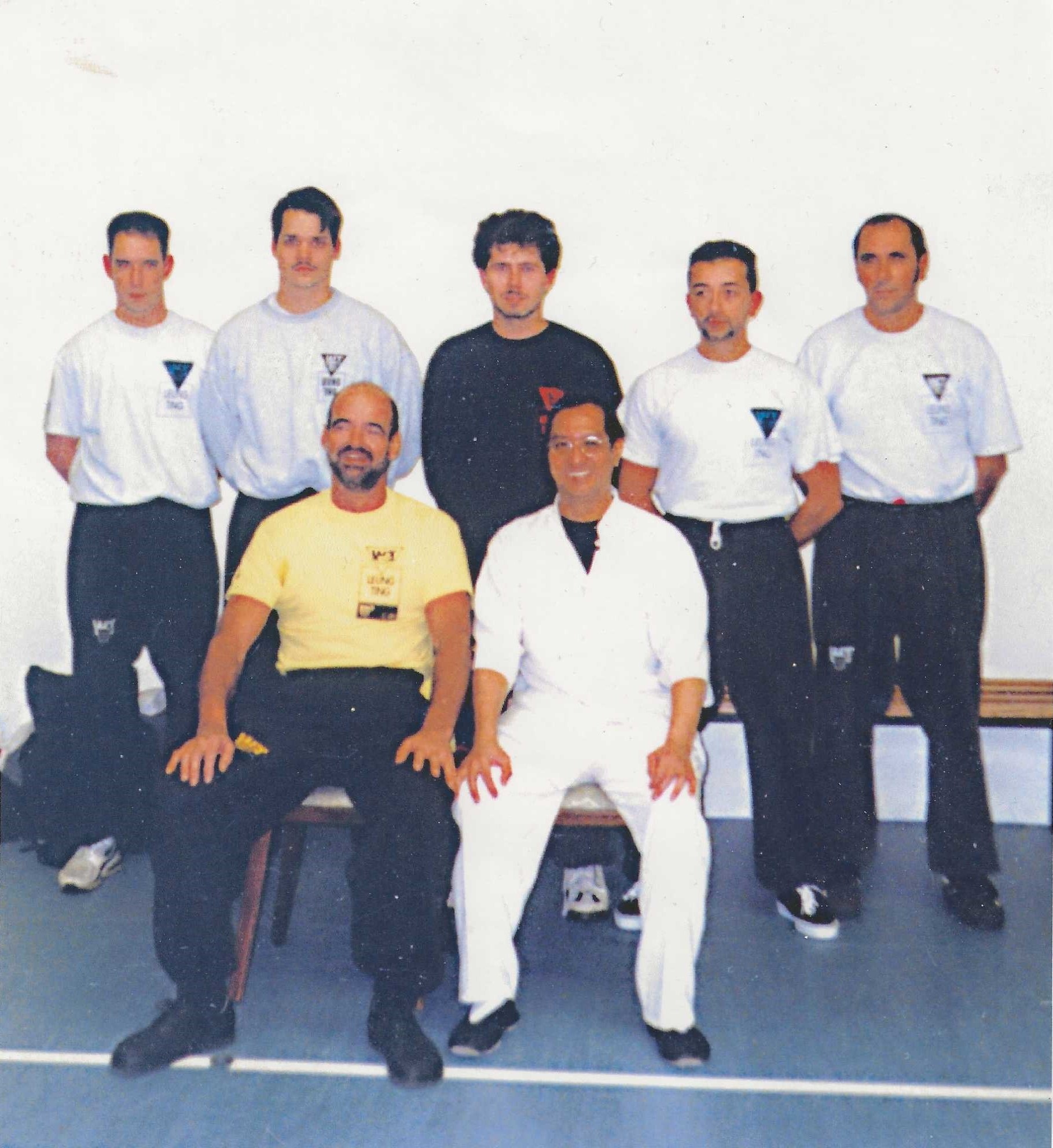 Dai-SiFu Patrizio als Schüler mit seinem Si-Fu GM Keith R. Kernspecht (links sitzend) und Si-Gung GGM Leung Ting (rechts sitzend).