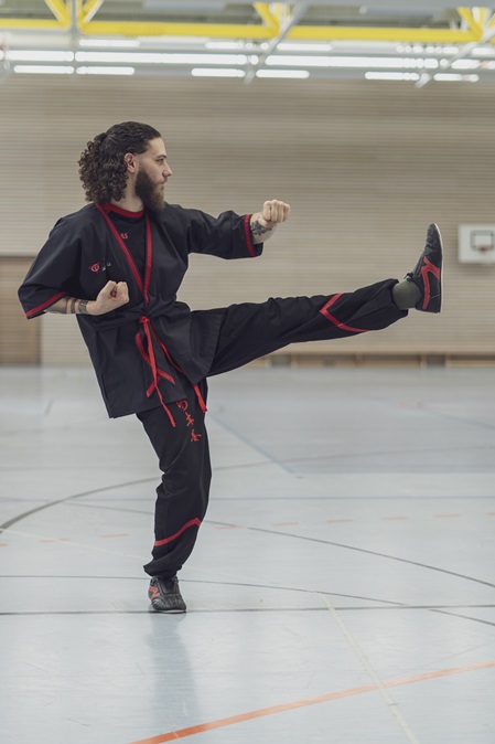 Zweite Form: Cham Kiu / Chum Kiu („eine Brücke bauen“): In der Chum Kiu werden die Basistechniken aus der ersten Form werden mit Fußtechniken (Gerk Fat) verbunden. Die Form beinhaltet verschiedene Schrittabfolgen (Bo Fa), und Wendungen ("Ju-Sun-Ma", "Juen Ma"), die koordiniert miteinander kombiniert werden.