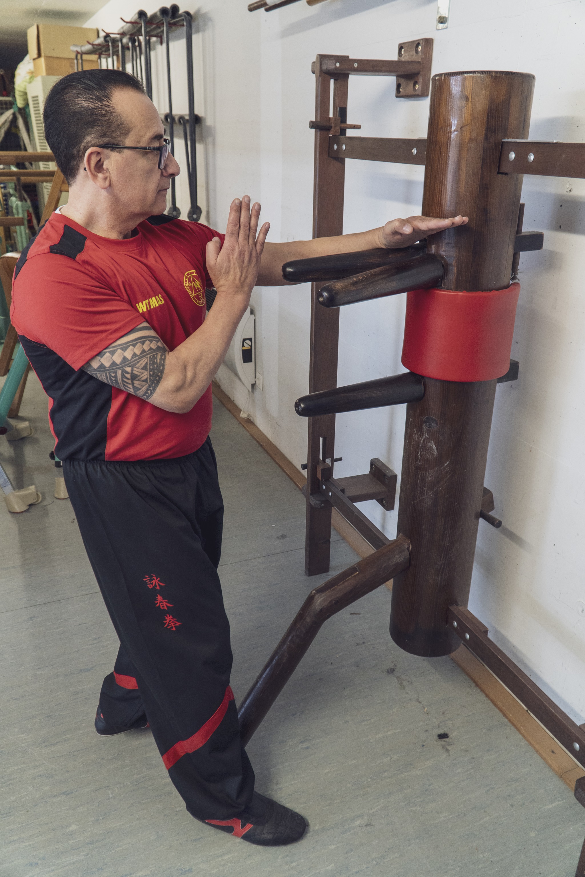 Vierte Form: Muk Yan Chong Fat („Holzpuppen Form“): Dies ist die erste Form im WingTsun-System, die direkt an der sogenannten Holzpuppe trainiert wird. In diese anspruchsvolle Form fließen die Bewegungsabläufe und Prinzipien aus den ersten drei Formen (Siu Nim Tau, Chum Kiu, Biu Tze) ein und werden hier vervollständigt.